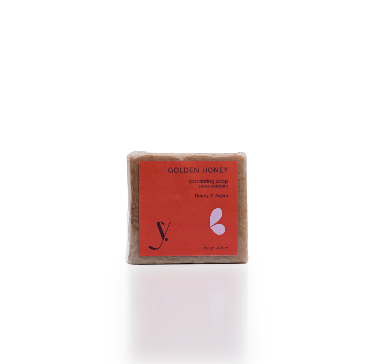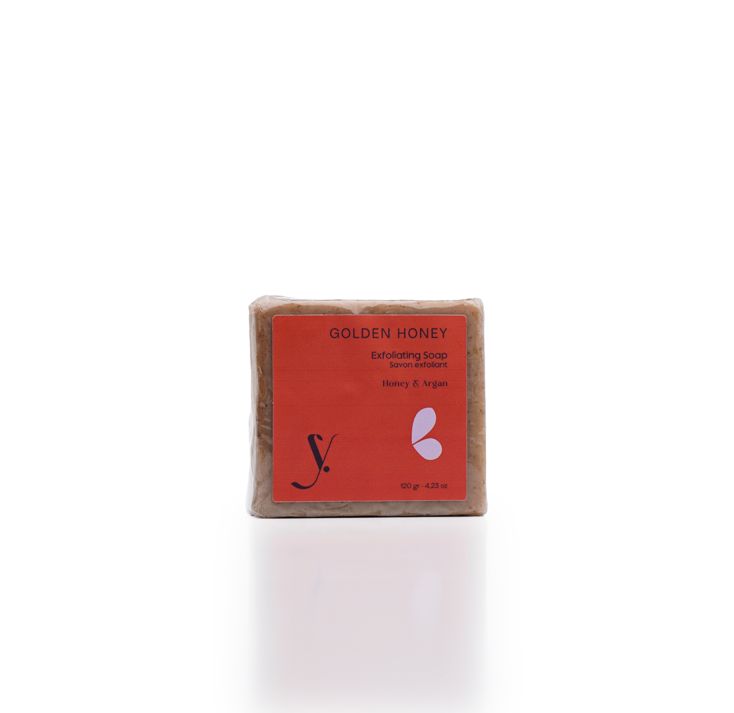 Un soin gourmand pour une peau douce et lumineuse. Golden Honey est un savon riche aux grains exfoliants naturels qui élimine en douceur les cellules mortes tout en nourrissant intensément grâce à l’argan et au miel. Taux de naturalité: 98,56% Contenance : 120g · 4,23 oz